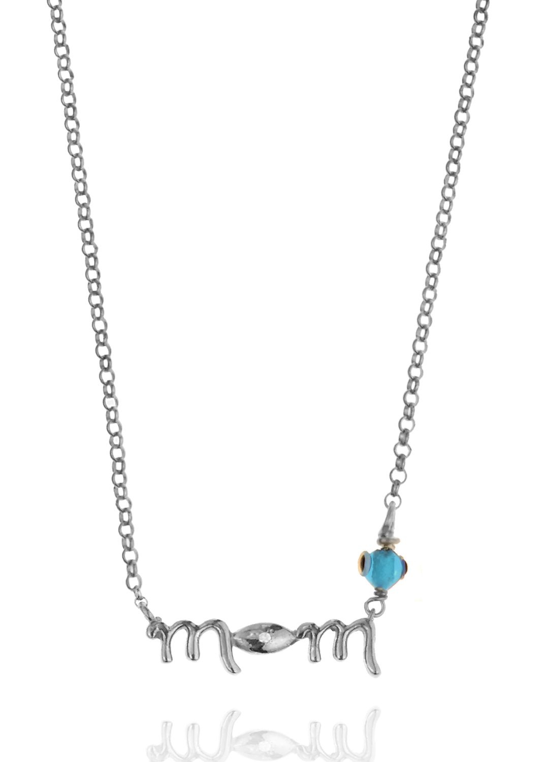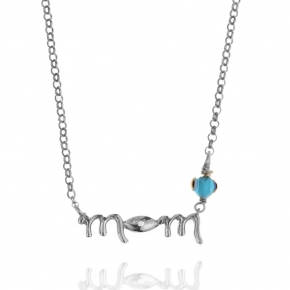 Κολιέ ασήμι 925 επιπλατινωμένο 'μαμα' με ματάκι