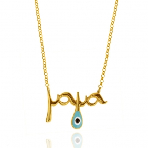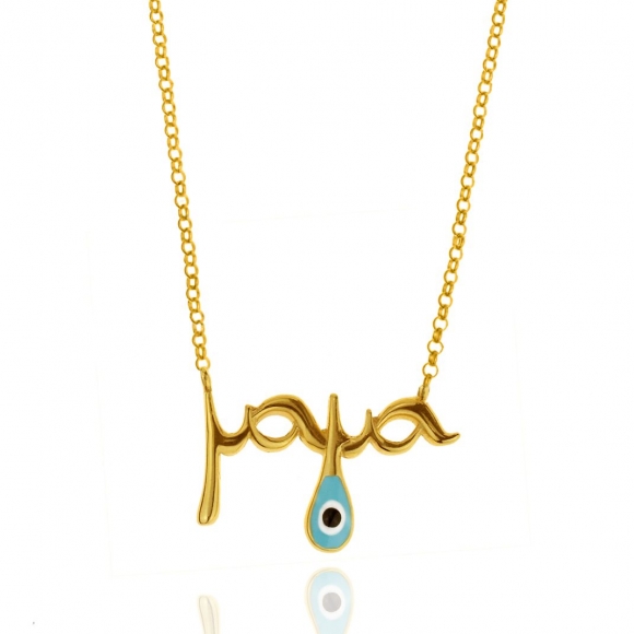Κολιέ ασήμι 925 επιχρυσωμένο 'μαμα' με ματάκι από σμάλτο