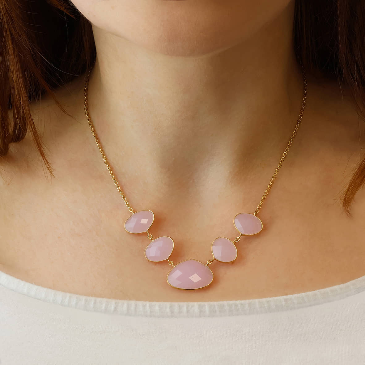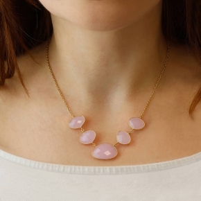 Κολιέ ασήμι 925 επιχρυσωμένο με pink quartz