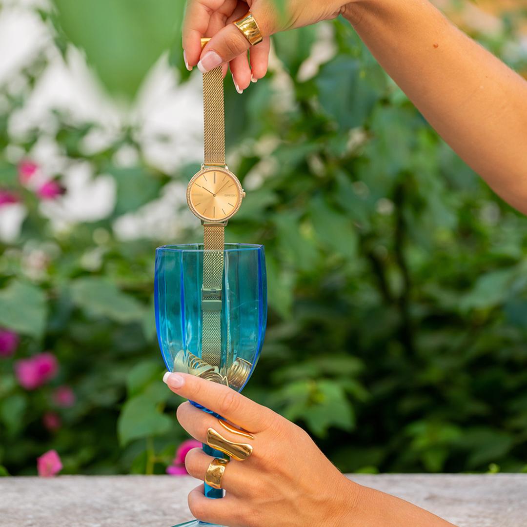 Αποφύγετε την επαφή με τα αρώματα, τις κρέμες και το νερό όταν είναι δυνατόν ώστε να προστατευθεί η επιμετάλλωση στο κόσμημα. Τα επιχρυσωμένα κοσμήματα τα καθαρίζουμε απαλά με ένα μαλακό πανί γυαλίσματος.