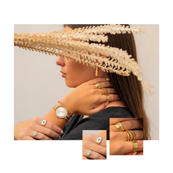 Δαχτυλίδι ασήμι 925 επιχρυσωμένο με μάτι από σμάλτο
