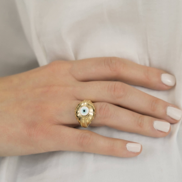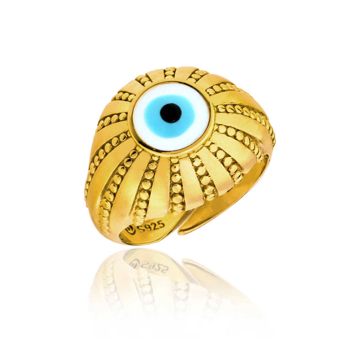 Δαχτυλίδι ασήμι 925 επιχρυσωμένο με χειροποίητο μάτι από σμάλτο